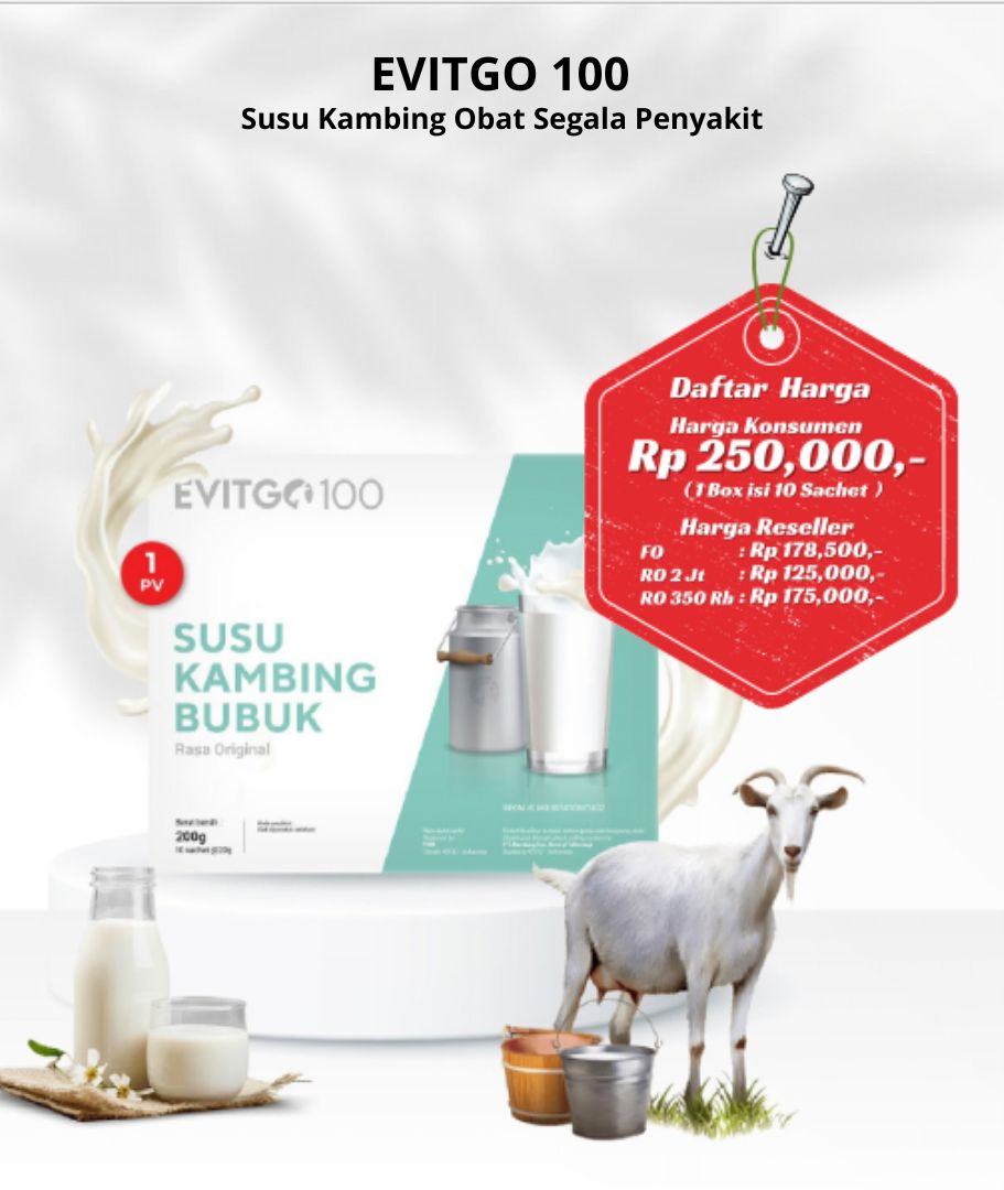 EVITGO 1OO adalah minuman serbuk susu kambing premium yang terbuat dari susu